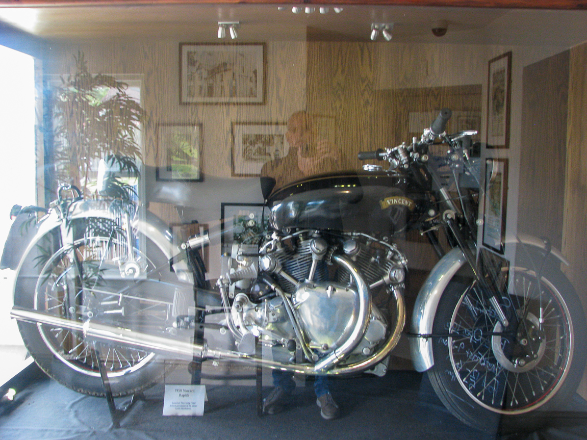 I hotellets entre stod en Vincent Rapid årgang 1950. Mange pudsige tekniske løsninger.