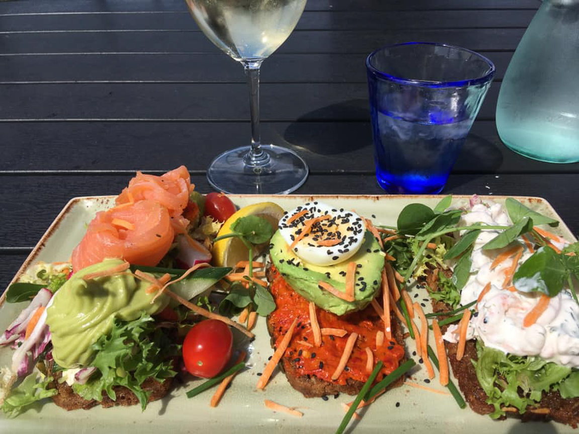 Nyder en sen frokost på Café 3kanten med fantastisk udsigt over Guldborgsund.